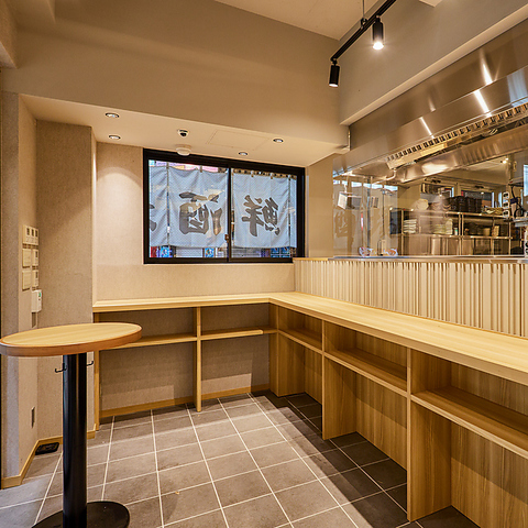 白木を基調とした立ち飲み席。「ザ・酒場」といった雰囲気をお楽しみいただけます。