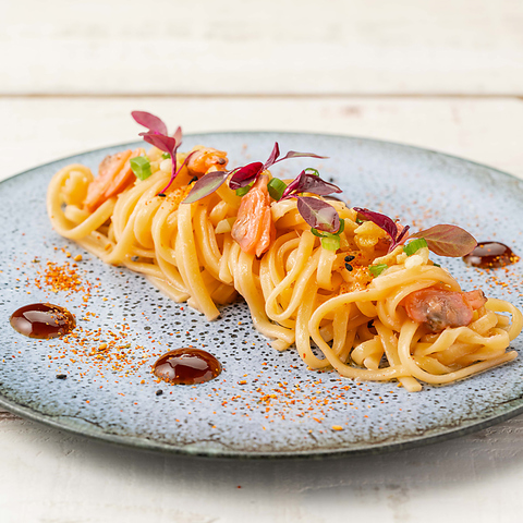 鯛を持ったゑびす様を象徴に、こだわりの鯛料理をご用意。その他にも肉料理や、季節の野菜、海鮮などを使い、シェフが腕を振るう逸品もご注目。人気の定番料理にちょっと一工夫。ヱビスビールを知り尽くした専門店だからできる料理のマリアージュをお楽しみください。