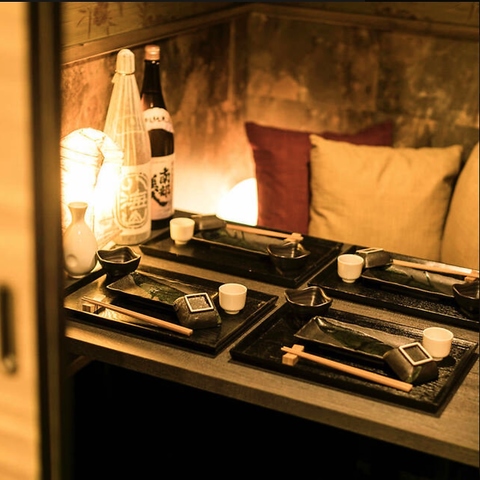 完全個室は2名様からご用意しております。間接照明と和の装飾の数々が洗練された大人な空間を演出しております!扉付きとなっておりますので周りを気にせずお楽しみいただけますよ!当店でゆっくりと羽を伸ばしてご寛ぎくださいませ♪(武蔵小杉/個室/串焼き/野菜巻き)