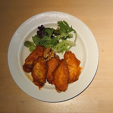 手羽に辛くて酸っぱいソースが絡んだニューヨーク定番 「バッファローチキン」お供はビールかハイボールで。