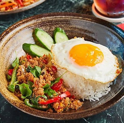 チキンガパオ+トムヤムクンスープ・Chicken Ga Pao Rice with Tom Yum Soup [ランチセット]
