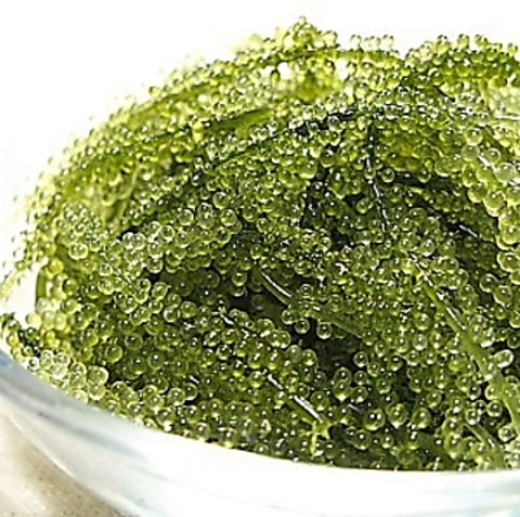 沖縄といえば海ぶどう、ぷちぷち食感がたまらない!シークヮーサーポン酢をつけてお召し上がりください。