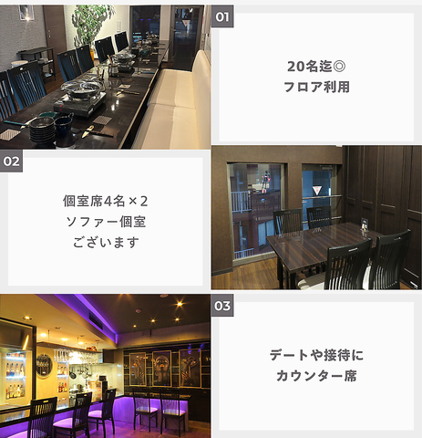 上品さとカジュアルさが調和した店内は、普段使いから、デートや記念日にもオススメの空間です!完全個室や半個室を複数ご用意しております。ご友人とのお食事や会社の宴会、大切な人との時間を過ごすのにも最適です。お一人様でのご利用も大歓迎◎ご予約はお早めに【プロジェクター完備、団体30名迄可能、貸切15名~】