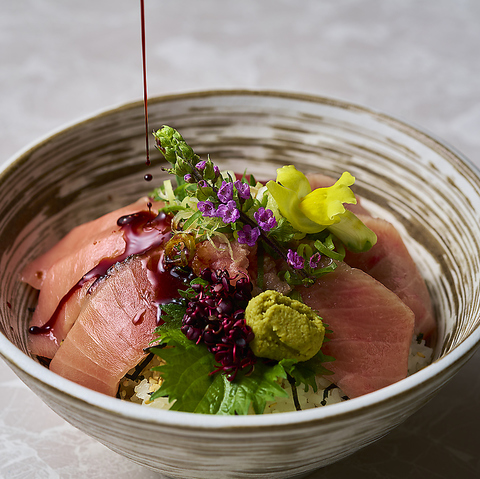 焼津産ミナミマグロを使用脂の乗った上質なミナミマグロを贅沢に盛り付けました。見た目にも華やかな逸品です。