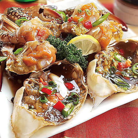 渡り蟹丸ごと1杯を旨味醤油に漬け込んだ「カンジャンケジャン」は驚きの美味しさと大好評!