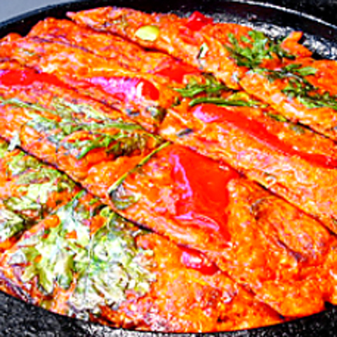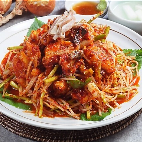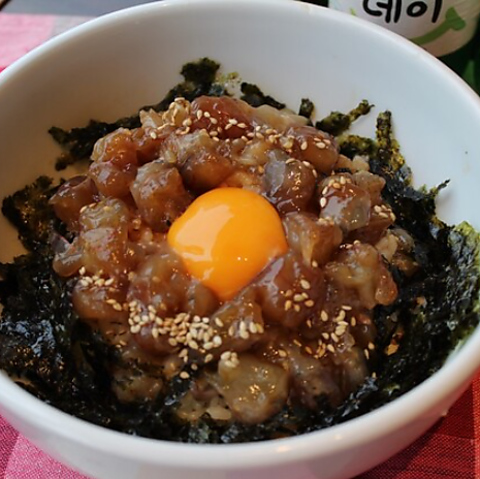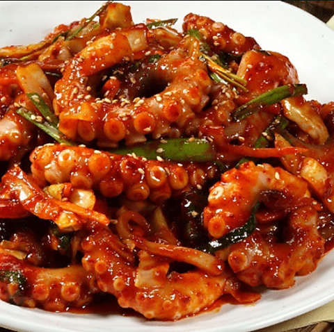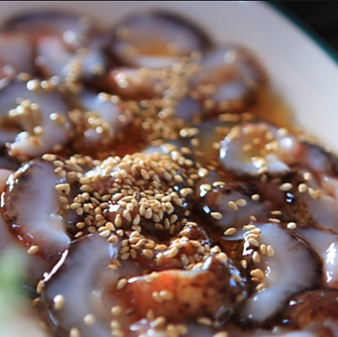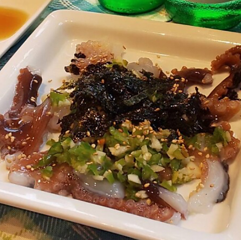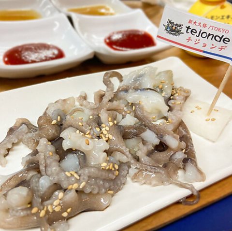 活きたまま調理し、まだ動いている状態で提供します。吸盤が口にくっつく独特の食感と風味はまさに珍味!ぜひ一度味わっていただきたい一品です。香ばしい胡麻油と酢コチュジャンの2種類のソースをご用意。数量限定なので、お早めのご注文をおすすめします!