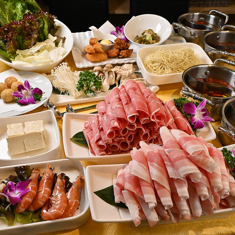 上質なお肉をジューシーにいただく、当店イチオシ【銘々盛り】の火鍋はテーブルを華やかに演出します♪鍋を囲みながら、食材の旨味が溶け込んだスープと口に広がる旨味と共に、美味しさと楽しさを存分にご堪能ください♪ご宴会は最大50名様まで収容可能☆1フロア貸切もできますのでお気軽にご相談ください!