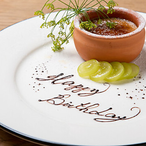 ご友人やパートナーのt何常備、記念日に嬉しい記念日プレートのご準備を承っております!お気軽にご予約ください。