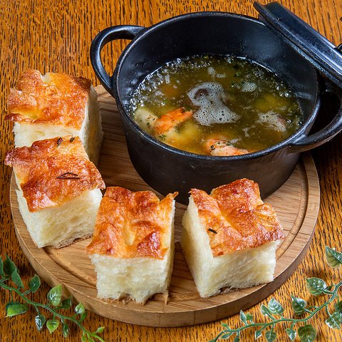 「海老ときのこのアヒージョ」は旬の食材を使用しており、いつでもお楽しみ頂けます!その他にも一品料理を豊富に取り揃えておりますので、ぜひお店にお越しいただきお楽しみください。※写真はイメージです。
