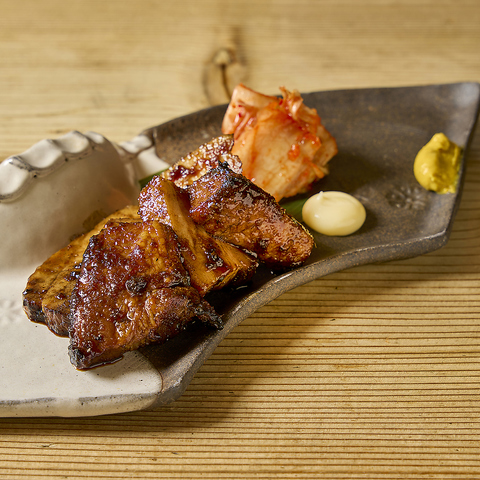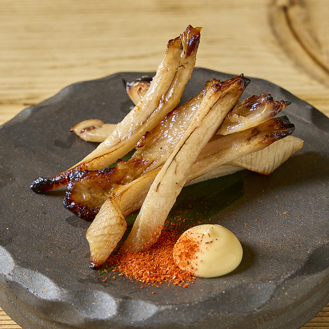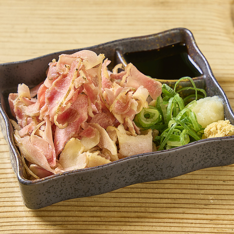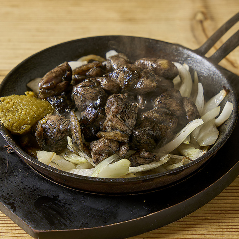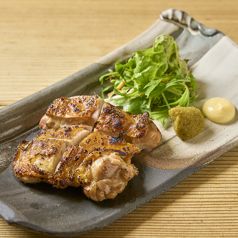 700日育成し、強い歯ごたえと、コクと旨みのある味わいが特徴の知覧鶏はお酒のアテにピッタリ☆炎を上げて豪快にレアで焼き上げております!お好みでお酢、柚子胡椒、ガーリックチップスとご一緒にお召し上がりください!