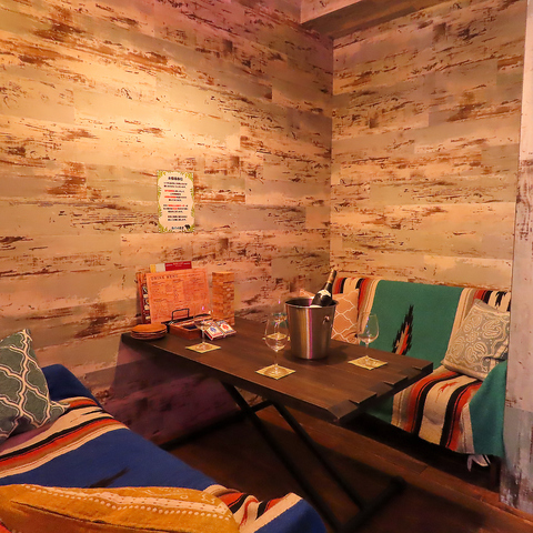 大人気の半個室♪こだわりのインテリアは、アメリカの西海岸をイメージ。プライベート空間なので、大事なお食事の時間を邪魔しません。人気のお席なのでご予約いただくことをお勧めします。女性のみのご利用で最大6名様でお座りいただけます。