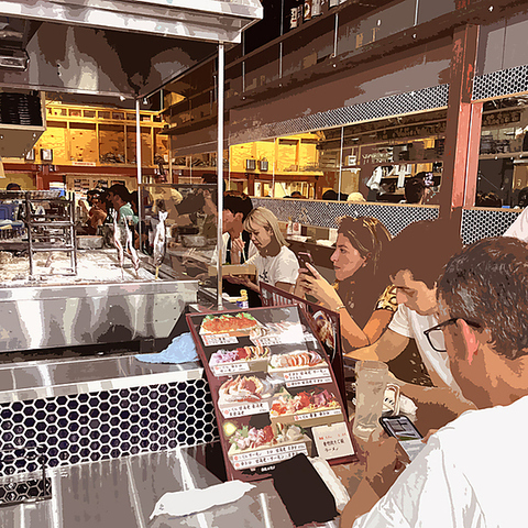 【 目印は大きなオマール海老 】築地場外では珍しい、朝10時からお酒が飲める居酒屋です。お魚自慢の居酒屋さんより新鮮な魚が自慢。お酒は大辛口日本酒や、焼酎、サワーなど種類豊富にご用意しております。スタッフ一同、元気いっぱい、丁寧をモットーに営業しております。