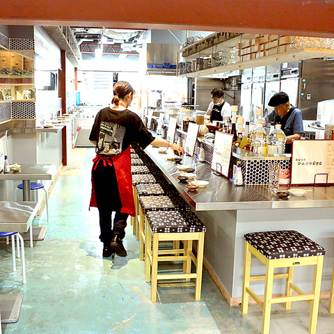活気あふれる立ち飲みスペースでは、友人や仲間と気軽に乾杯が楽しめます。カウンター越しに料理人の技を見ることができ、新鮮な料理とお酒を手軽に味わえるのが魅力。