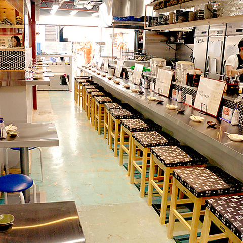 長いカウンター席は、人数が多い観光のお客様にも人気です。