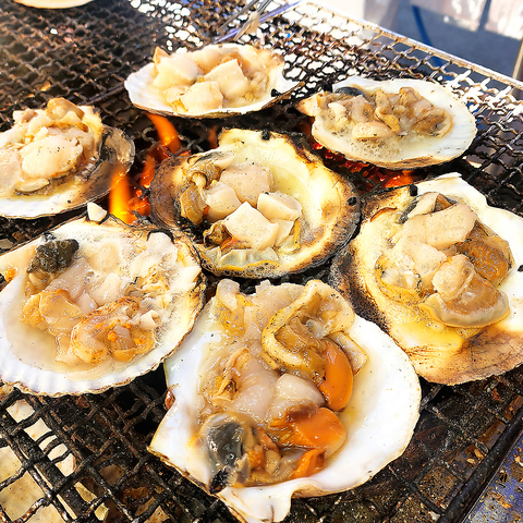 ホタテや牡蠣、はまぐりなど貝類が人気!ホタテはガーリックバター焼きや磯辺焼きでご提供いたします。