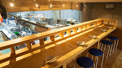 【ライブ感◎囲炉裏を囲むカウンター席】囲炉裏を前に、ライブ感を味わいながらお食事をお楽しみいただける店内カウンターが人気です。また、1階のオープンキッチンを見渡しながら食事を楽しめる2階のカウンターと、1階・2階共にカウンター席をご用意していますのでおひとり様もお気軽にどうぞご来店ください。