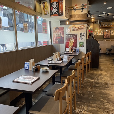 家族連れや友人との食事に最適なテーブル席もご用意しています。店内は広々としており、ゆったりとした時間を過ごせます。また、喫煙可能な席もあり、タバコを吸いながら飲食を楽しむこともできます。くつろぎながら、美味しい料理とドリンクを堪能してください。