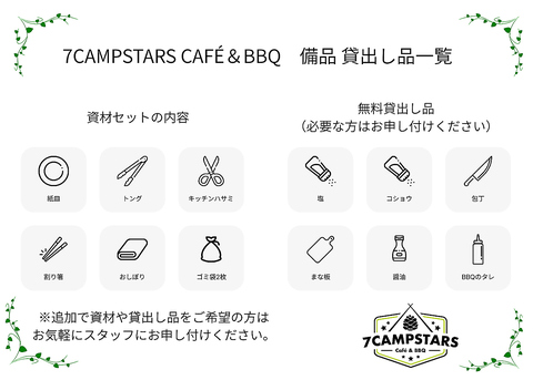 穏やかに流れる時間を楽しみながら開放的な空間で手ぶらBBQを楽しむことができる7CAMPSTARS CAFE&BBQ!友人や家族と共に非日常をお楽しみ下さい♪