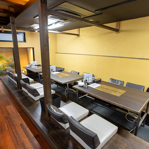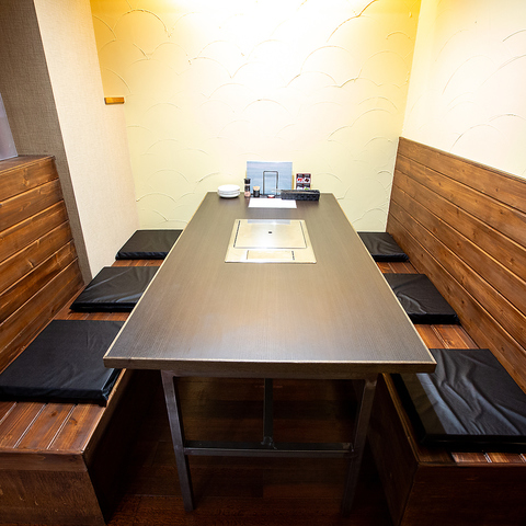 掘り炬燵席のほか、テーブル席やカウンター席も完備!どちらのお席もゆったりとした造りになっておりますので、気兼ねなくお食事をお楽しみいただけます。さらに当店では煙が出づらい無煙ロースターを使用しておりますので、焼肉のにおいが気にならないのも嬉しいポイント。居心地のよいこだわりの和空間で皆様をおもてなしさせていただきます。