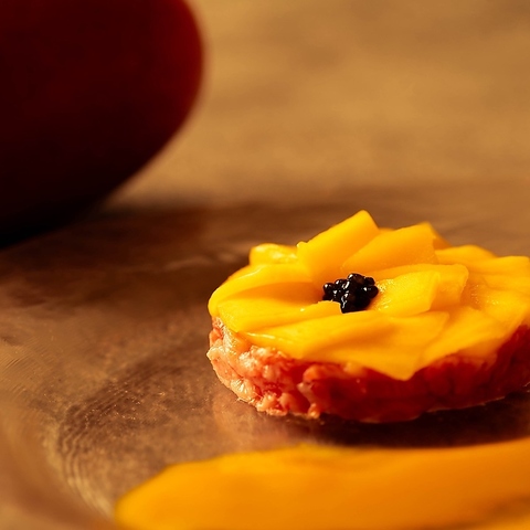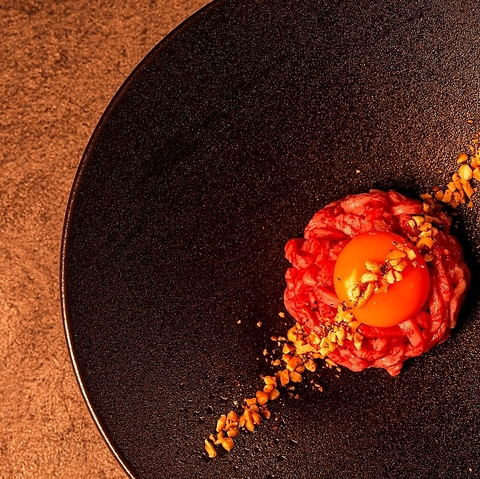 生食肉取り扱いの資格を取得しており安心して提供を行っております。季節×ユッケ 他では味わえないユッケを味わうことができます。