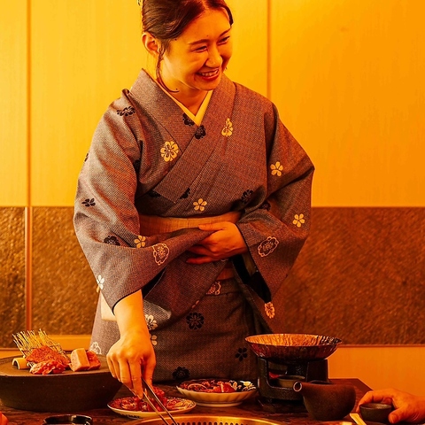 若女将の満開の笑顔と最高級の平井牛でおもてなしいたします。