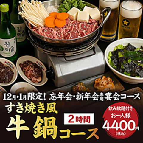 焼肉とすき焼き風の牛鍋が楽しめる、贅沢な期間限定コース!もちろん120分飲み放題付きです♪