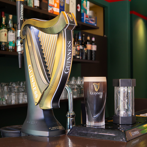 【当店名物★スタッフが注ぐこだわりビール】ハイカウンターの目の前で、アイリッシュパブの熟練スタッフが注ぐギネスビールは絶品です!まろやかな泡とのどごしの良いキレ味を実感してください♪丹念にグリルされたソーセージ・丁寧に仕込んだスペアリブ ギネス煮込み・スモークサーモンなどの当店看板メニューとの相性も◎