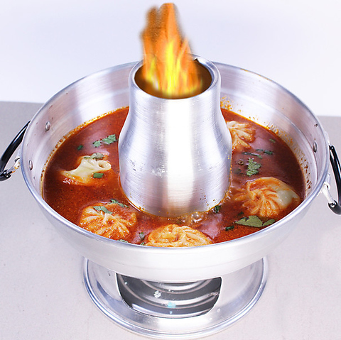 [ピリ辛] 炎の上がるネパールのスープ餃子!ピリ辛スープをたっぷり!