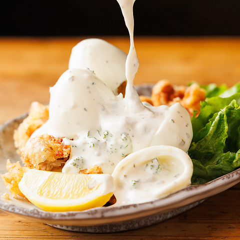 当店ではジューシにサクッと揚げた鶏のもも肉に、新鮮な玉子をふんだんに使用した特製tのタルタルをたっぷりかけた逸品!腹ペコさんも大満足♪