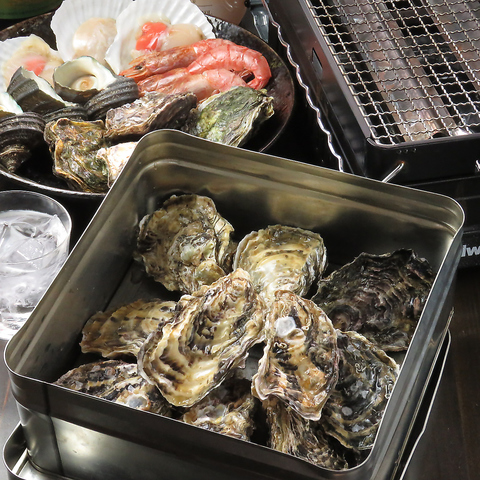 新鮮魚介を目の前で焼くことのできる浜焼スタイルがおすすめ★はまぐりやホタテ・サザエ・牡蠣など、産地直送の新鮮な素材は絶品♪牡蠣のガンガン焼きなど、グツグツと食材に火が通る様子や、はまぐりの「パカッ」と殻が開く瞬間は目でも楽しめる!