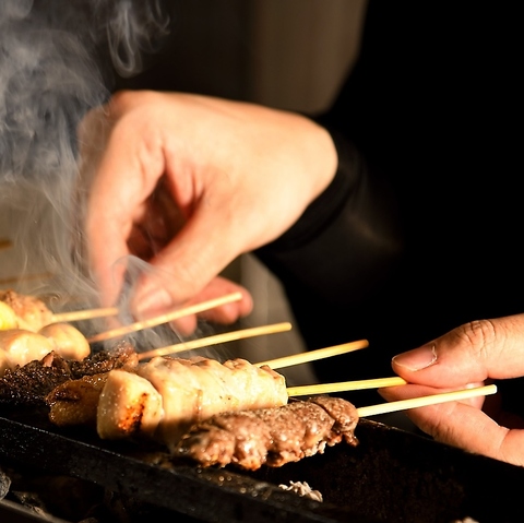 朝挽き地鶏を使用の焼き鳥は絶品!焼き鳥の完成イメージを考えて、部位によって串打ちを変えています。毎日、1本1本丁寧に打たれた串。そして焼き鳥のプロが豪快な炭の火力で旨みを凝縮した逸品に仕上げます!秘伝のタレ&厳選『塩』のお好きな食べ方で焼き鳥を体感してください!!