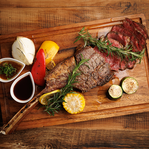 骨付き牛ステーキには厳選したワインを合わせてお楽しみください。