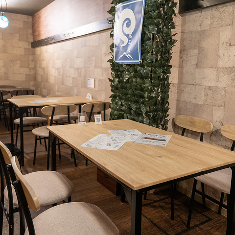 | テーブル | 4名様×2 | 様々なシーンにも使いやすい、4名様掛けのテーブル席を完備しております。仕事帰りのサク飲みやご家族でのお食事にもぜひ♪ |