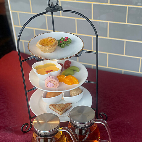 点心専門店ならではのアフタヌーンティーを楽しむことができます。美しい3段のスタンドには、季節のフルーツや手作りスイーツが並び、目でも楽しませてくれます。種類豊富に楽しめるのが魅力。ソフトドリンクが一杯ついているので、様々な組み合わせでオリジナルの味わいを探求できます。