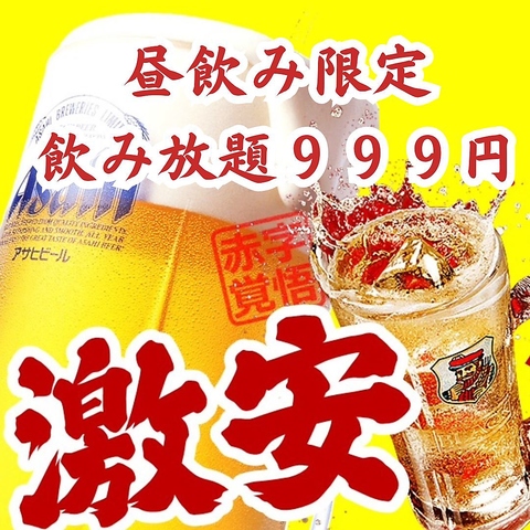 激安!平日のお昼は当店へ♪ハッピーアワー生ビール・酎ハイ・翠ジン329円(税込)※平日open~18時までブラックニッカハイボール219円(税込)※終日【平日昼限定】1時間飲み放題999円(税込)