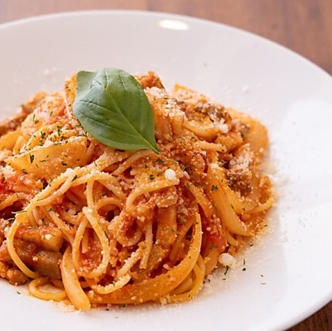 お店のこだわりがたくさん詰まった「ミートソース」は絶対に食べていただきたい一品。赤ワインと半熟トマトを使って丁寧に煮込まれた特製ミートソースは、ひき肉の旨味がぎゅっと凝縮されており、生パスタとよく絡みます♪ミートソースはランチでも楽しめます◎