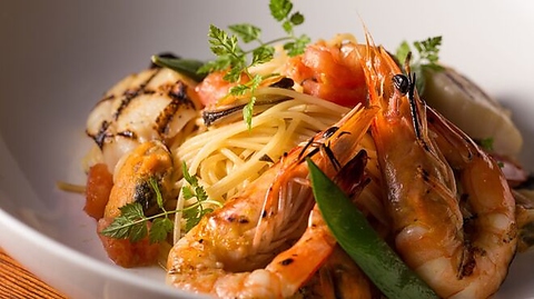 特大の皇帝海老がまるごとグリルされ、目の前に登場する瞬間はまさに圧巻!ジューシーな身を一口頬張れば、豊かな海の香りが広がり、至福のひとときを感じることができます。グリルされた海老は、外はカリッと香ばしく、中はふっくらとした食感が楽しめる一品です。