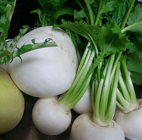 お店で使う野菜のほとんどは亀岡野菜です。お世話になっている農家さんの聖護院かぶらはしなやかでオススメ