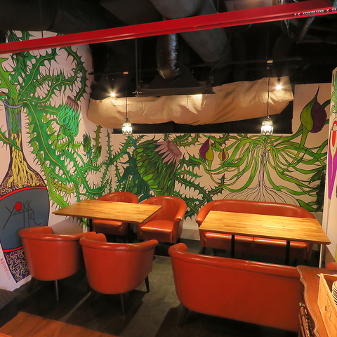 お店に足を踏み入れると、すぐに目に飛び込むアート。それは居場所の想いや形を表現しています。私たちは内装にこだわり、アートを通じて空間を心地よく、そして思い出に残る場所にしています。ご友人やご家族との食事、誕生日や記念日など様々なシーンでご利用いただけます!