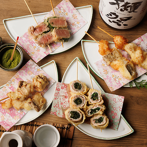 一本ずつ丁寧に衣づけし、揚げたてをすぐに提供するこだわりの串天ぷら!鮪やアスパラ、和牛や帆立などバリエーション豊かな全6種類を楽しめます!お酒との相性抜群で、軽くつまむのにもピッタリ!