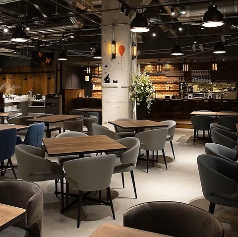 モダンとヴィンテージが融合したおしゃれで広々とした空間は、バーカウンターも完備。宴会やパーティーに最適なコース料理が充実しており、結婚式の二次会利用をはじめ、同窓会、接待、会食など、大人数での幅広いシーンにご対応可能です。貸切利用も可能で、多彩なメニューと心地よい空間が、大切な人との特別なひとときを華やかに彩ります!