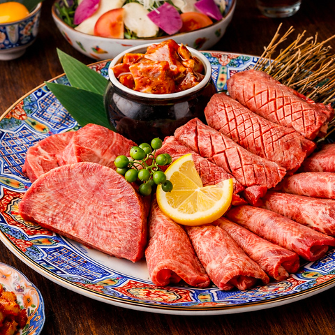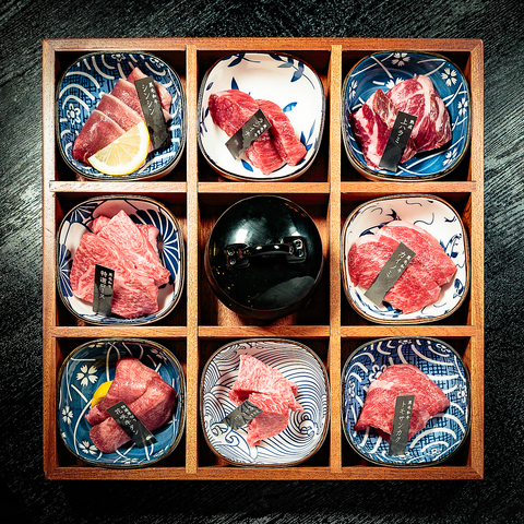 これ一つで当店の特選牛を食べつくしその日のおすすめを一度に堪能する、焼肉好きの夢の盛り合わせ。厳選された上質な部位を8種類、豪華に盛り合わせた特別な一皿です。部位ごとに異なる食感や脂の甘み、肉本来の香りを味わえます。[2~3人前]