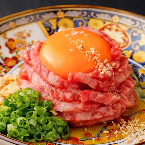 爽やかなネギ塩と香ばしいナッツ&ブラックペッパーの2色で味わう贅沢ユッケなどアラカルトメニューも充実