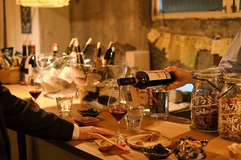 肩肘張らずに過ごせる、温かみのある店内。お一人様でも入りやすく、初来店でも自然と馴染める雰囲気です。カウンター中心の立ち飲みスタイルなので、マスターとの距離も近く、会話を楽しみながらワインを選べるのも魅力。常連のお客様が多いのも、居心地の良さの証です。