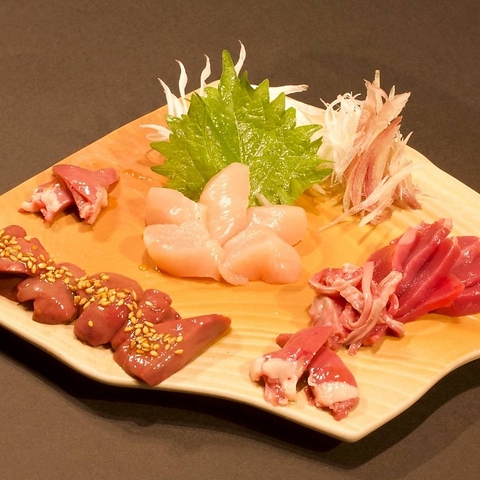 和歌山県産の新鮮な朝挽き鶏を使っています。俗に言う銘柄鶏と同じく60日~70日間じっくりと飼育され、与える餌も徹底管理された餌を与えて大事に育てられています。その為肝にも脂が乗り若鳥の脂とは違った脂のりがあります。モモ肉も地鶏よりも柔らかく、若鳥よりも引き締まった程よい脂のり、歯応えがあります。