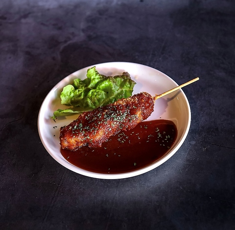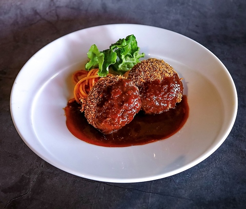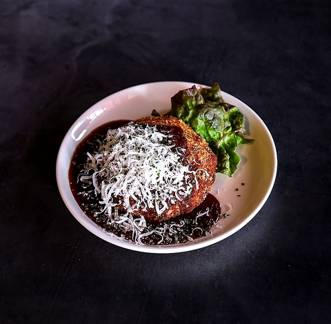 大海老、小エビ、すり身との食感を組み合わせることで、ふわふわな食感のなかにしっとりとした海老の存在感がある絶妙なバランスに仕上げています。ハンバーグステーキは肉肉しい食感をのこし、最大限にジューシーさを楽しんで頂けるよう仕上げました。海老カツとハンバーグの絶妙なハーモニーをお楽しみください。