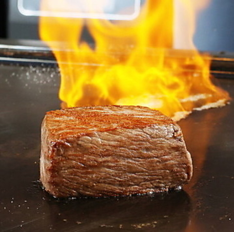カウンター席では目の前で調理が楽しめます。鉄板焼きの特等席で目の前で調理される鉄板焼きが魅力♪カウンター席では、調理の様子を間近で見ることができます。フランベやパフォーマンスも楽しめるので、食事がより一層楽しくなります。特等席で至福のひとときをお過ごしください!