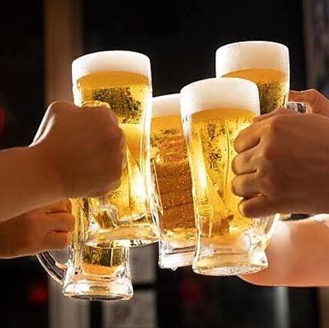 会社宴会、歓送迎会などにおすすめな生ビールOK飲み放題付きのお手軽宴会コース!