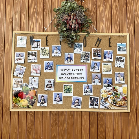 ベジフルキッチンでは、仕入れ先の中心となる豊丘村の農家さんの顔を表示しています。お客様にご安心いただけるように、店内のPOPにはその日仕入れた農家さんのお名前を表示しています。また、農作物それぞれの栄養素なども表示し、健康にも関心を持っていただけるように努めています。