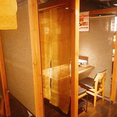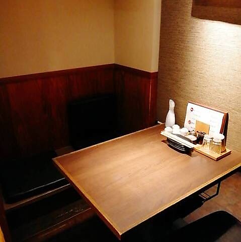 温かみのある木材を使用した落ち着いた雰囲気が特徴です。周囲は仕切りでプライベート感が保たれています。柔らかな照明が心地よい空間を作り出しています。